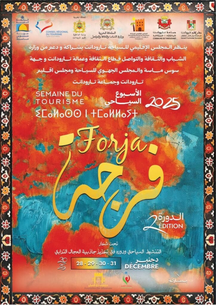 ينظم المجلس الإقليمي للسياحة بتارودانت، بشراكة ودعم من وزارة الشباب والثقافة والتواصل – قطاع الثقافة، عمالة تارودانت، جهة سوس ماسة، المجلس الجهوي للسياحة، المجلس الإقليمي لتارودانت، وجماعة تارودانت، فعاليات الدورة الثانية من الأسبوع السياحي “فرجة” بمدينة تارودانت، وذلك خلال الفترة الممتدة من 28 إلى 31 دجنبر 2025 بساحة 20 غشت.